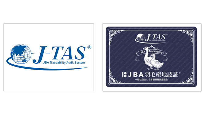 J-TASマークとは、羽毛商品が海外および国内の監査機関を通して正しいルートで輸出・輸入された証明となるマークです。