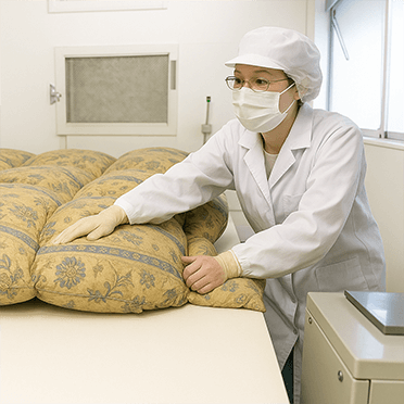 私たちの羽毛布団は、自社工場で丁寧に仕立て、
