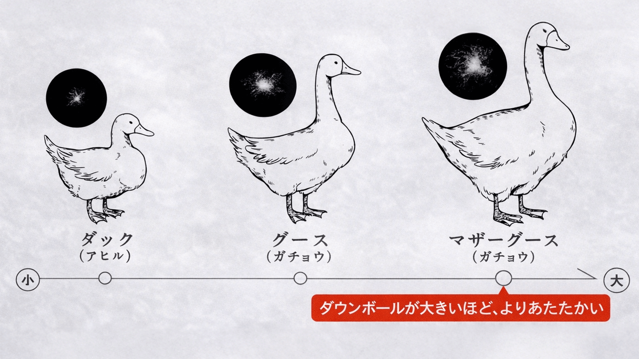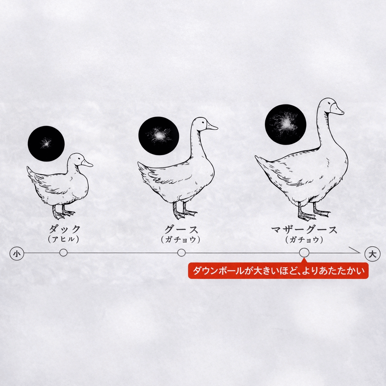 低いダウン率、未熟なダウン、羽毛の洗浄不足などで、温かさを感じにくいことも・・・