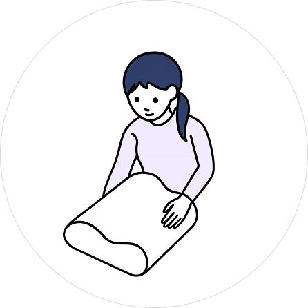 頭と首の微妙な形や高さの差を埋め、仰向き寝・横向き寝のどちらでもフィットする理想の高さに調節します。
